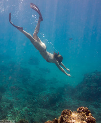 Parupeneus multifasciatus (Manybar Goatfish); With a whitemouth moray