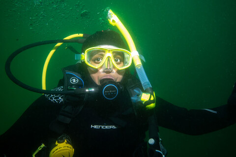 Rhacochilus toxotes (Rubberlip Seaperch); Rubberlip, with pile perch in background